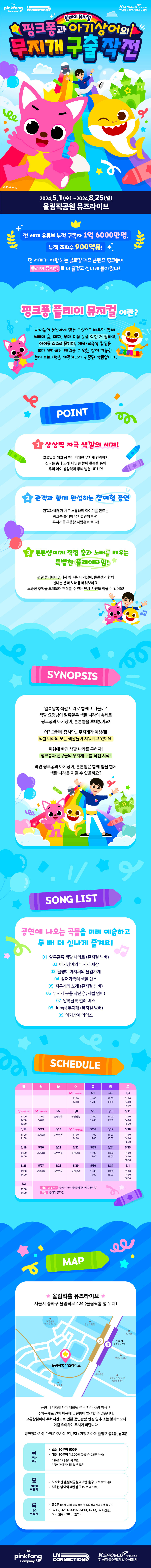 - * 주말 플레이 뮤지컬 : 토요일 11시, 14시, 16시 30분 / 일요일, 공휴일 11시, 14시